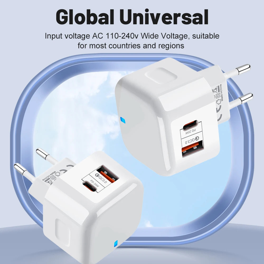 AuraPower Nano 20W Fast Charger – USB-C & USB-A Dual Port